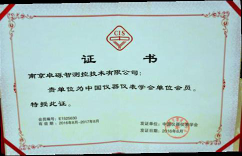 2016年獲批中國儀器儀表學會單位會員