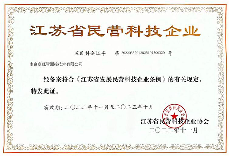 2022年獲得《江蘇省民營科技企業》